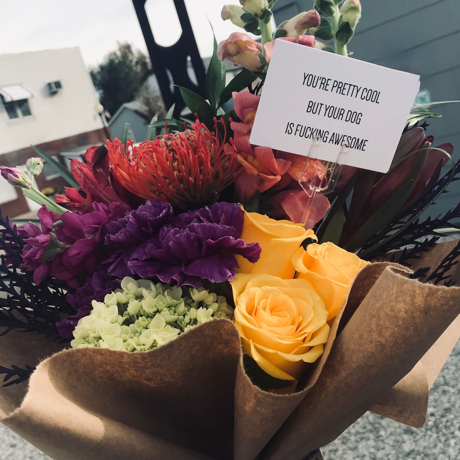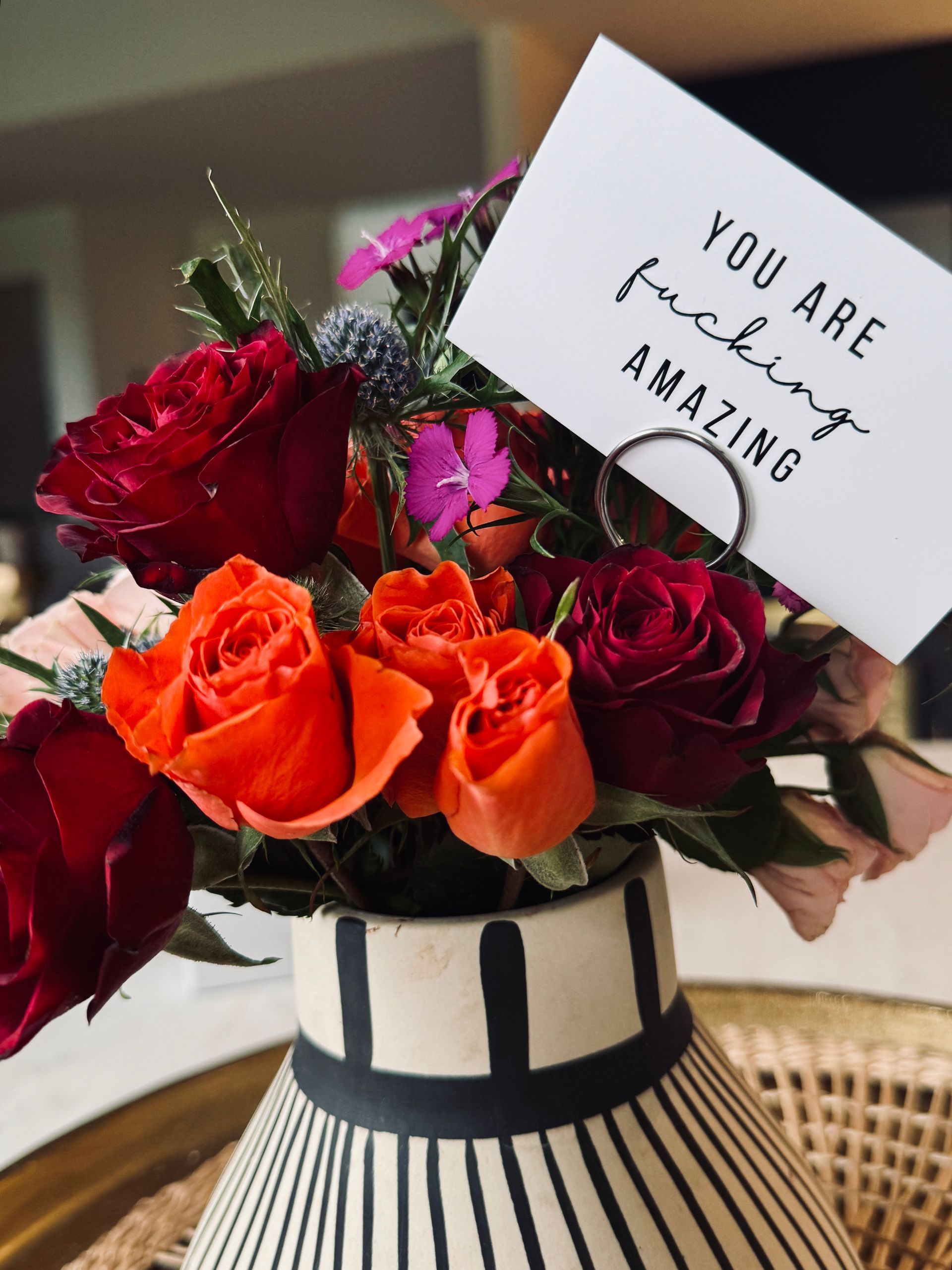 Each note is a little burst of personality, crafted to complement your gorgeous blooms with humor, heart, and a little unexpected edge. Because flowers are beautiful, but flowers with the right words? That’s unforgettable.